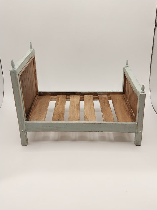Distressed Wooden Double Bed, Aqua