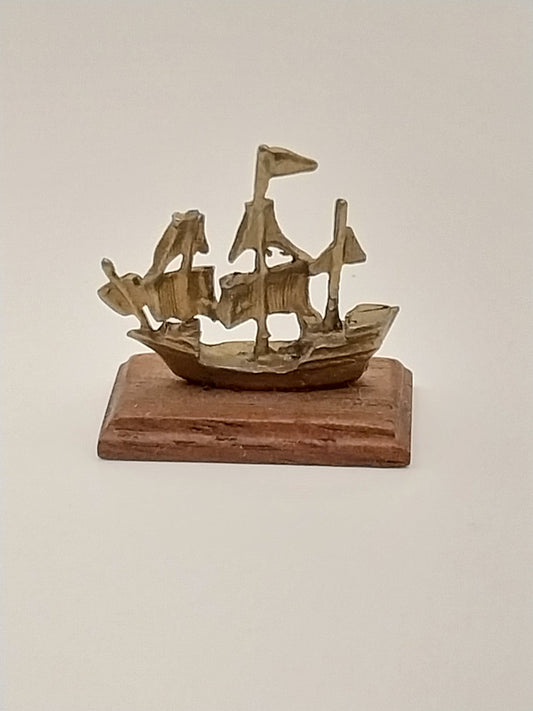 Sold outBrass Ship On Base, Signed