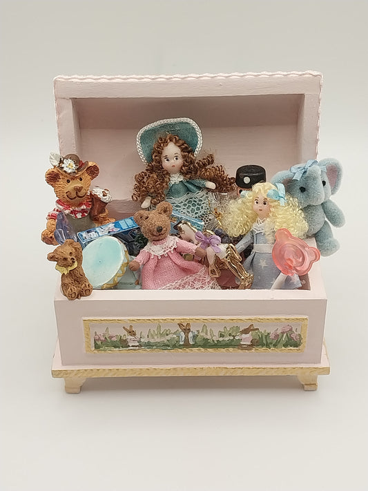 Toy Trunk Filled, Handpainted, Pink & Rabbits