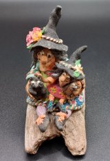 Witch Family on Log, Fimo