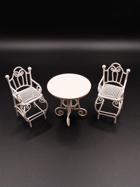 1/2" Scale White Iron Wicker Kitchen Set, 4pc
