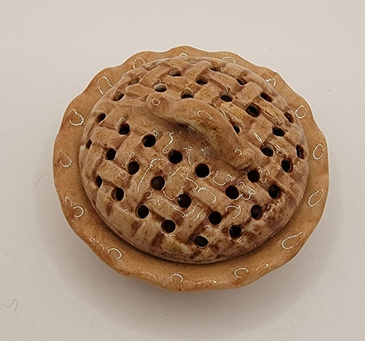 Peach Pie with Tan Ceramic Plate & Cover