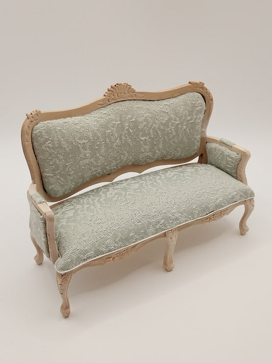 Queen Anne Side Chair, Brocade Green Fabric, Unfinished