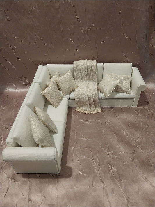 Sectional Living Room Set, Cream with Ivory Throw & Pillows