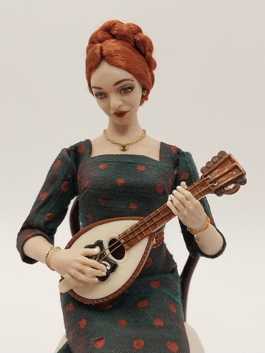 Lady Doll Playing The Lute, Hand Sculpted