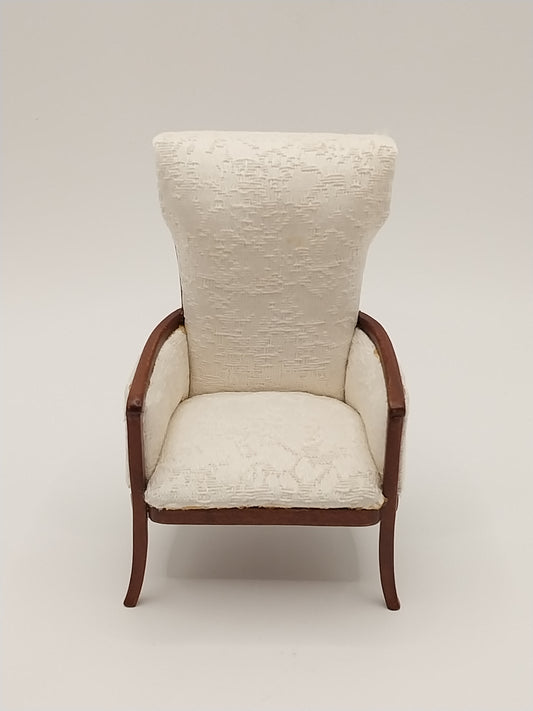 Carved Victorian Side Chair, White Brocade, Mahogany