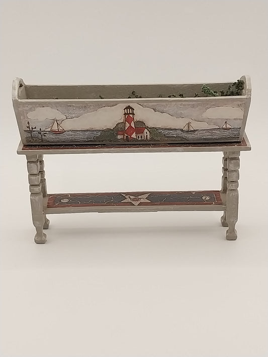 Stoneware Pottery Crock, Sailboat & Lighthouse