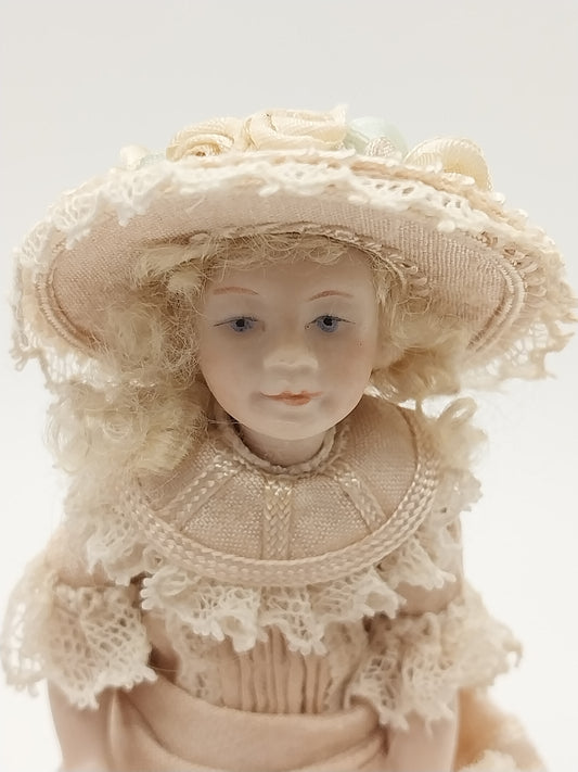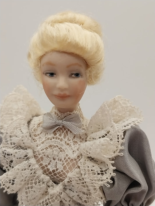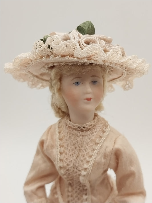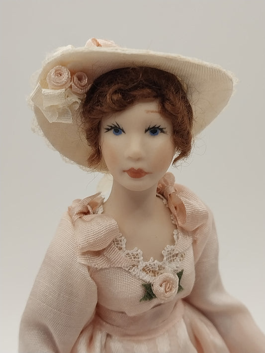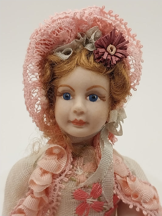 Victorian Mother & Daughter Doll, Pink Silk Stripe