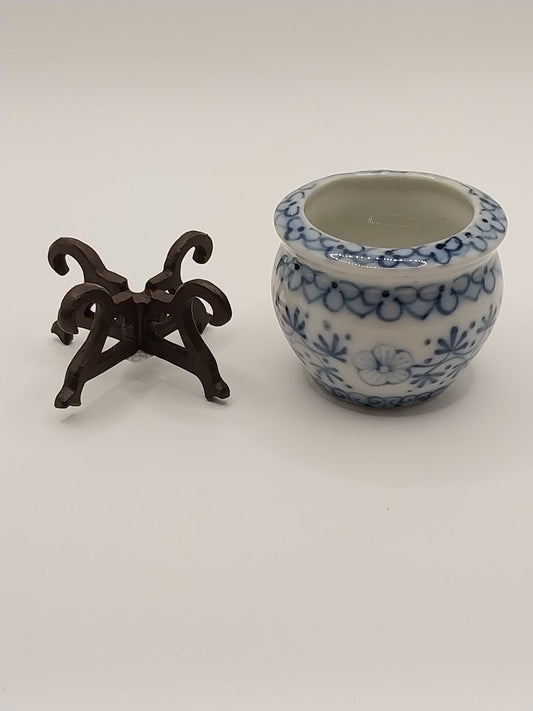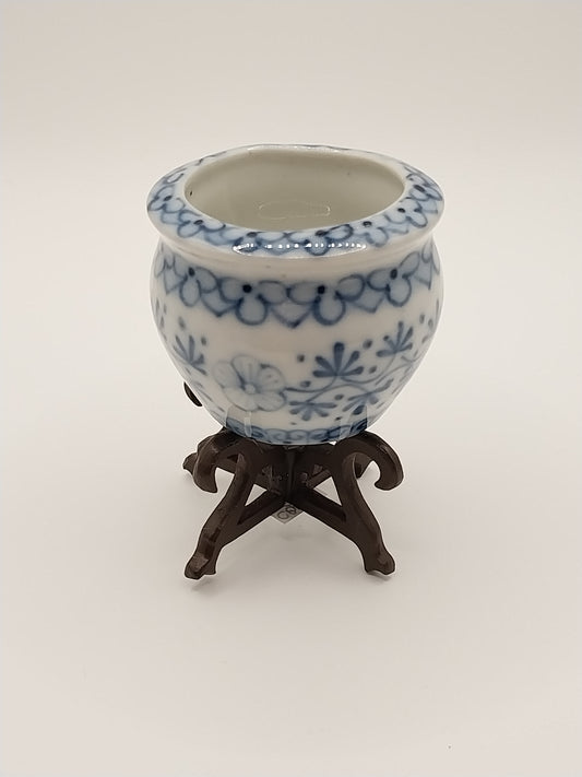 CRH852, White Ceramic Pot With Blue Design, Assorted, 1pc