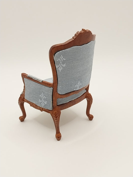 Carved Arm Chair, Walnut, Blue Flor De Lis