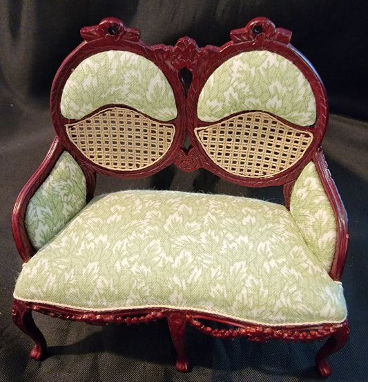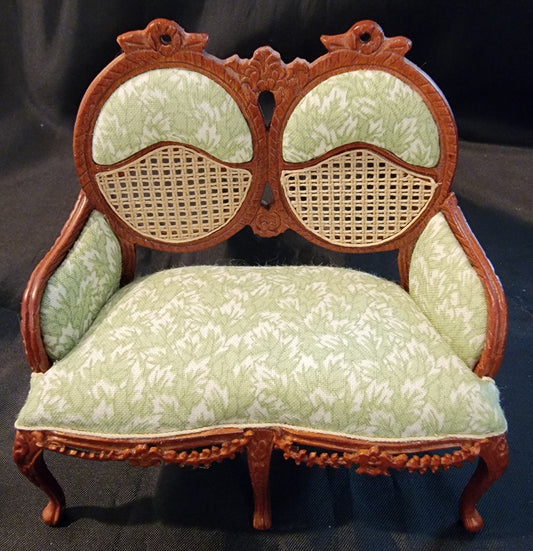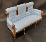 French Settee & Arm Chairs, 3pc, Walnut, Blue
