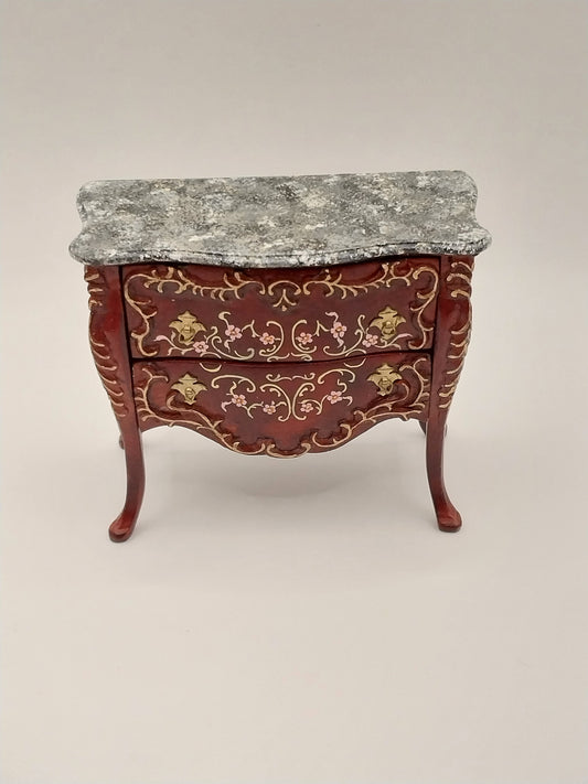 Small Bombe With Marble Top, Handpainted, Mahogany