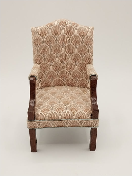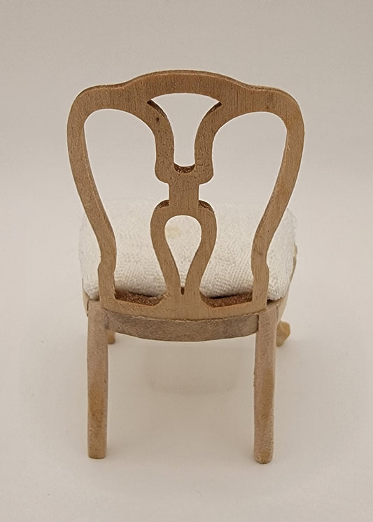 Queen Anne Side Chair, Brocade White Fabric, Unfinished