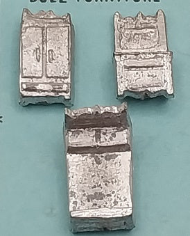 1/144" Scale 3 piece Bedroom Furniture Set, made of metal, can be painted. Set includes bed, armoire, and dresser