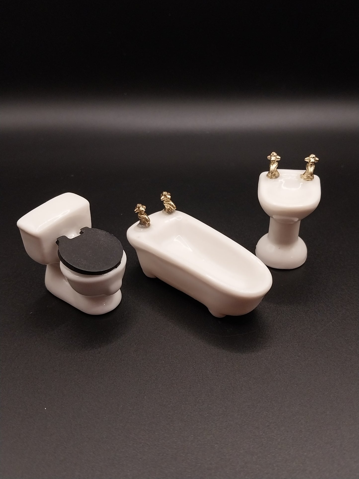 1/2" Scale 3 Piece White Bathroom Set. Set includes Bathtub, Sink, and Toilet