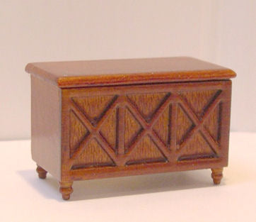 This fun little HALF INCH SCALE toy box finished in the spice stain can be used in a children's room or nursery -- either closed or open with toys spilling out. This versatile piece can also be used as a blanket chest and it works beautifully as a small coffee table in a den or living room.