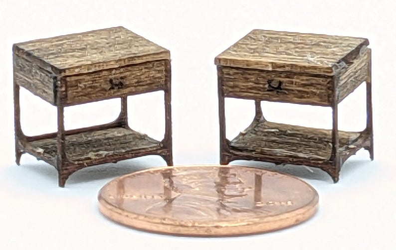 This is a kit for two, quarter-scale, laser-cut Mid-Century Modern bedside tables. It is made of basswood. The kit comes with everything you need to make two tables.