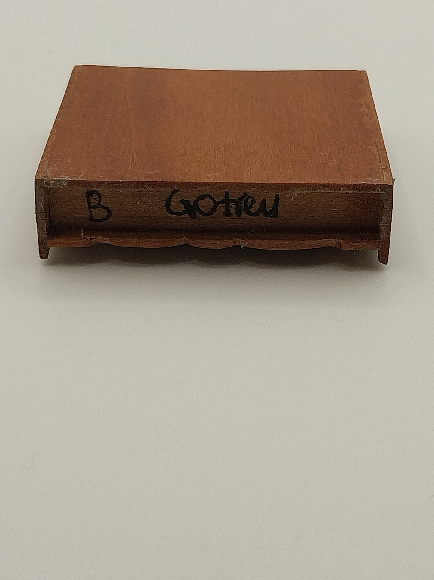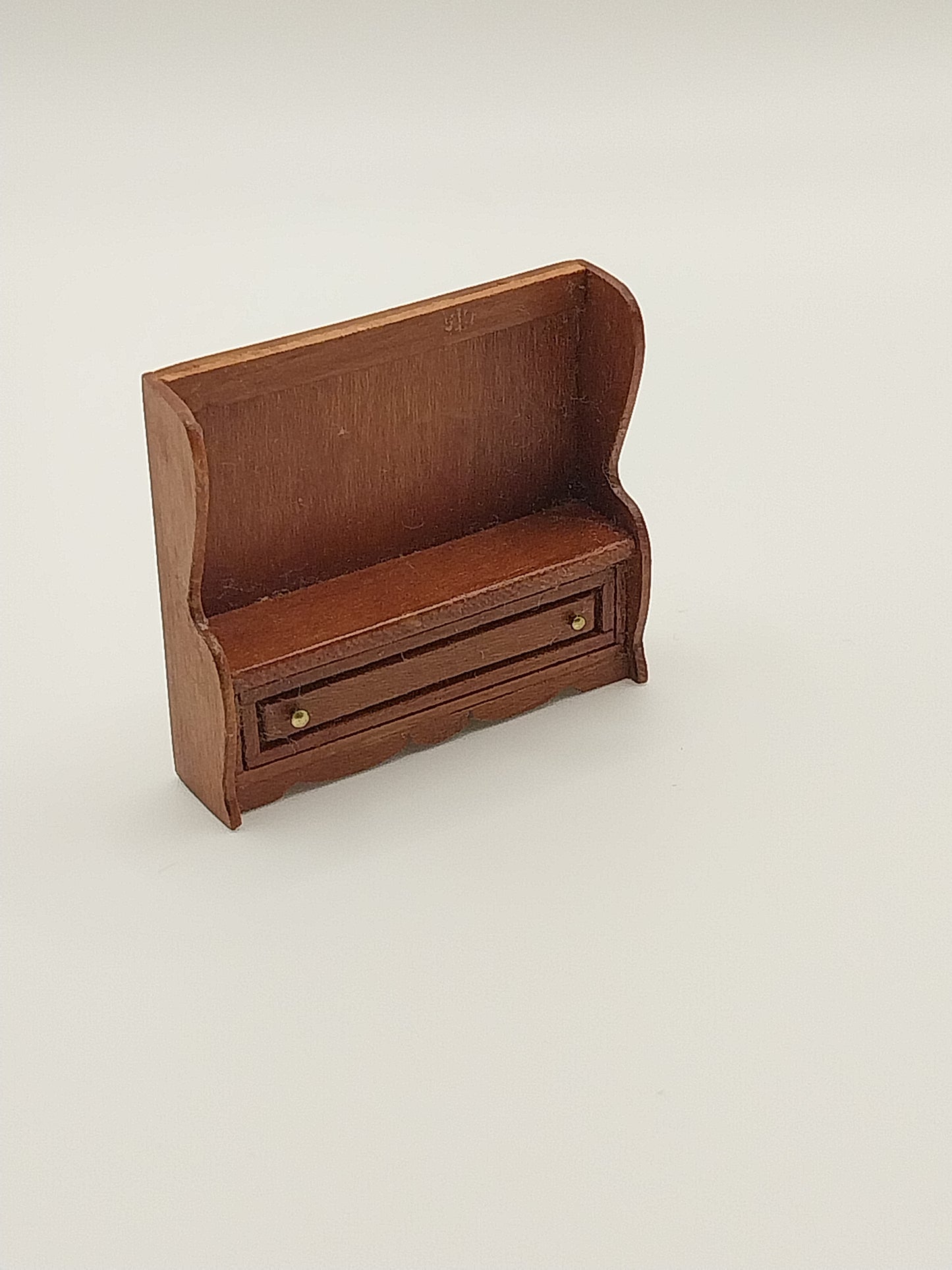1/4" Scale Trestle Bench with Faux Bottom Drawer, piece is signed by Artisan B. Godfrey. Bench is done in a Cherry Wood