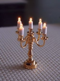 5-Arm 2" tall candelabra, battery operated. Without wires, it can be placed anywhere for a beautiful, well lit presentation and its warm glow makes any room an enchanting display.