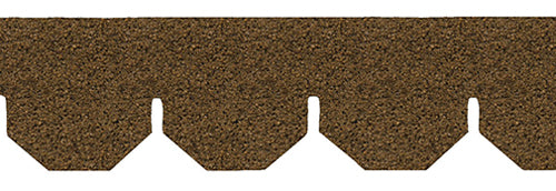 Tan Hexagon Asphalt Shingles are easy to cut and glue down. The strips of shingles are 1" high. It comes in a continuous roll so that you can easily install on to your roof. The best glue to use is Quick Grip and have it for sale CCC593. These shingles are very realistic! They are available in varies of colors.