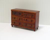 This is a simple but elegant wood chest of drawers finished in a spice stain. This piece has six recessed panel drawers, three on each side, with matching wooden knobs. The style is timeless and will work beautifully with any style of decor. Pair it with the Ashley Spice Mirror for an elegant 2-piece dresser set.