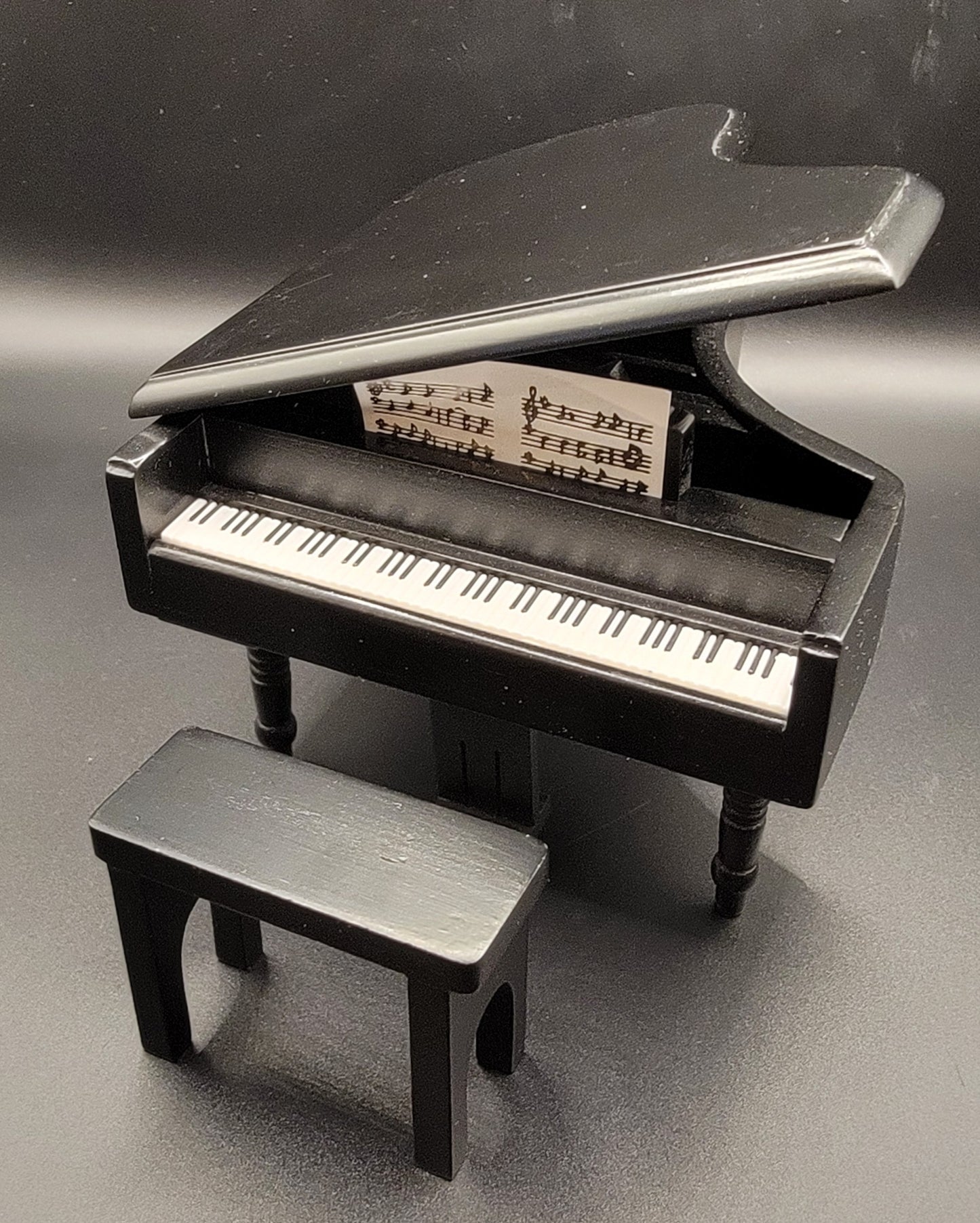 Baby Grand Piano & Bench in Black. Sturdy yet nicely done.