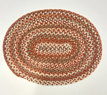 This Oval Braided Rug comes in a Burgundy Rust, Greens, Tans, Browns.