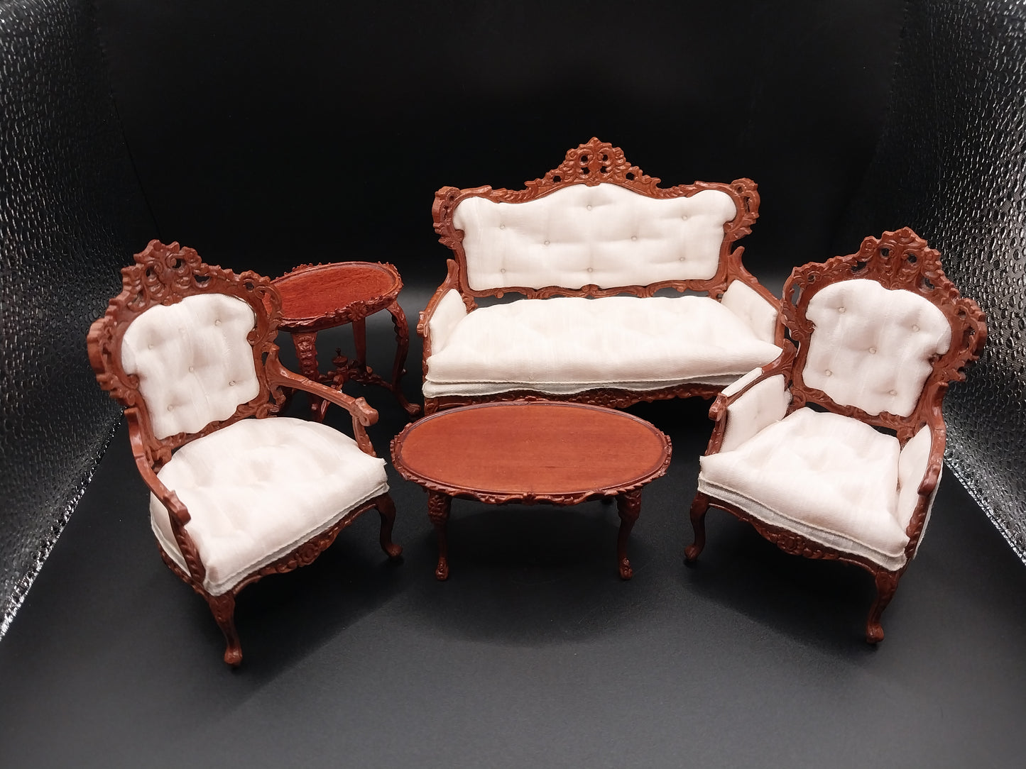 Coffee Table: 3 1/4"L x 1 7/8"D x 1 1/2"H Side Table: 2 3/16"W x 1 1/2"D x 2 5/16"H