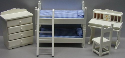 White 5 piece Bunk Bed Bedroom Set, set includes Bunk Beds, Desk, Chair, Ladder, and dresser