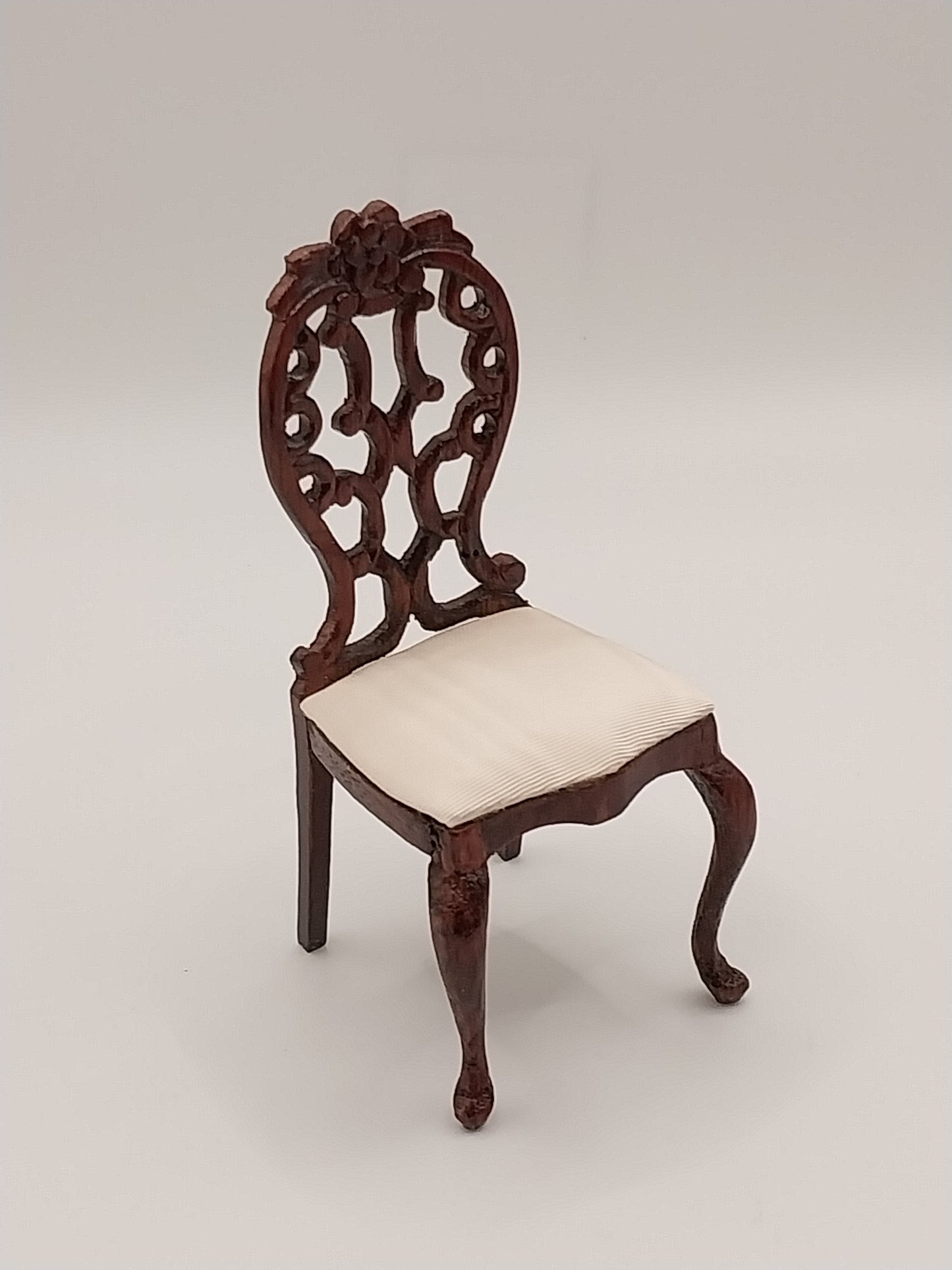 This Carved Side Chair is made by Bespaq and comes in a Mahogany finish. Chair has Cream Moire fabric.