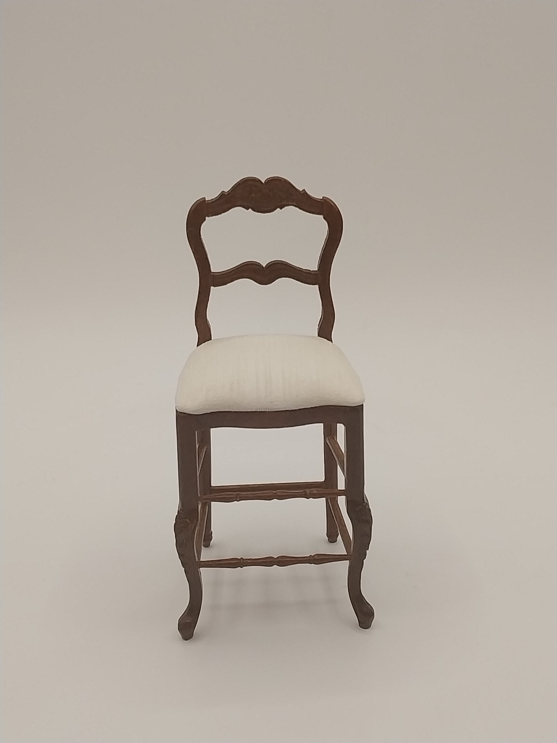 Kitchen Island Chair made in Walnut. Seat is in off white cream fabric. This piece is part of the Platinum Collection Series.