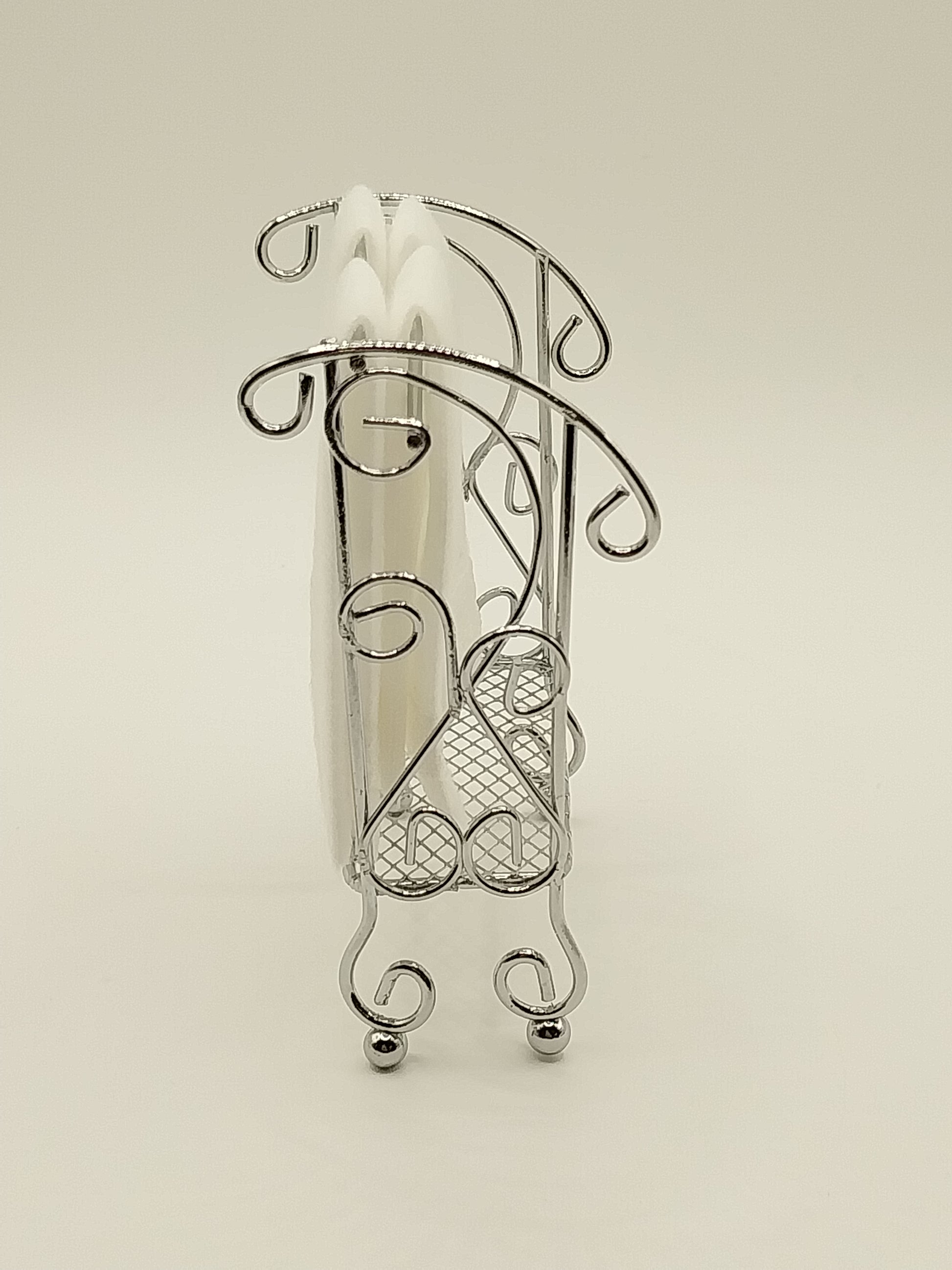 This Silver Towel Rack is made by Reutter Porcelain. Towel Rack comes with a set of 4 white bath towels.