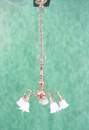 This five arm tulip chandelier has removeable shades allowing easy access to the replaceable bi-pin bulbs. All Clarebell Lights are solid brass, museum quality, and are made in the United States.
