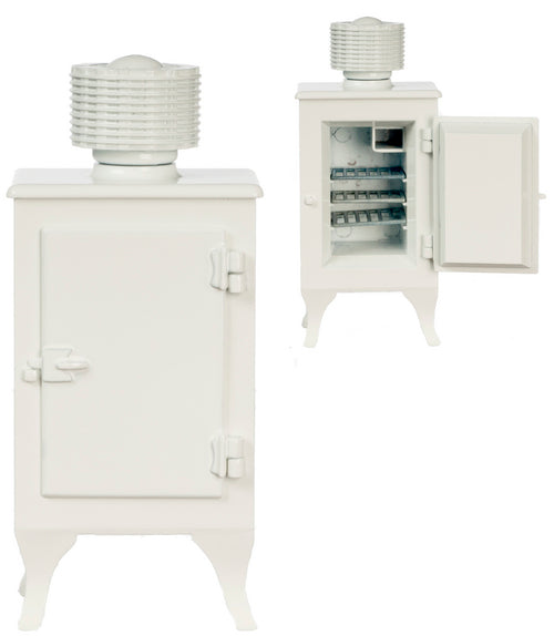 Cast iron Monitor Top Refrigerator just like grandma use to have. Working doors and metal shelving inside add great detail to this wonderful 1920's piece.