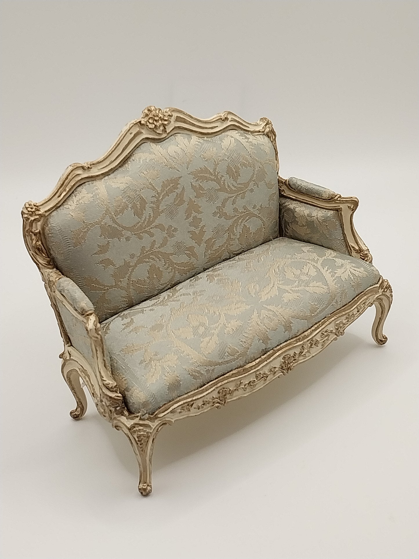 Size: Settee: 4 1/2"W x 1 3/4"D x 3 1/2"H Chair: 2 3/8"W x 1 3/4"D x 3 1/8"H