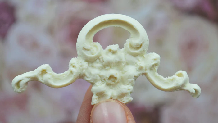 Unique Miniature products are a casted resin that can be painted or faux stained to look like wood. The ceiling applique flowered with a swirl is sold in a 4 piece pack.