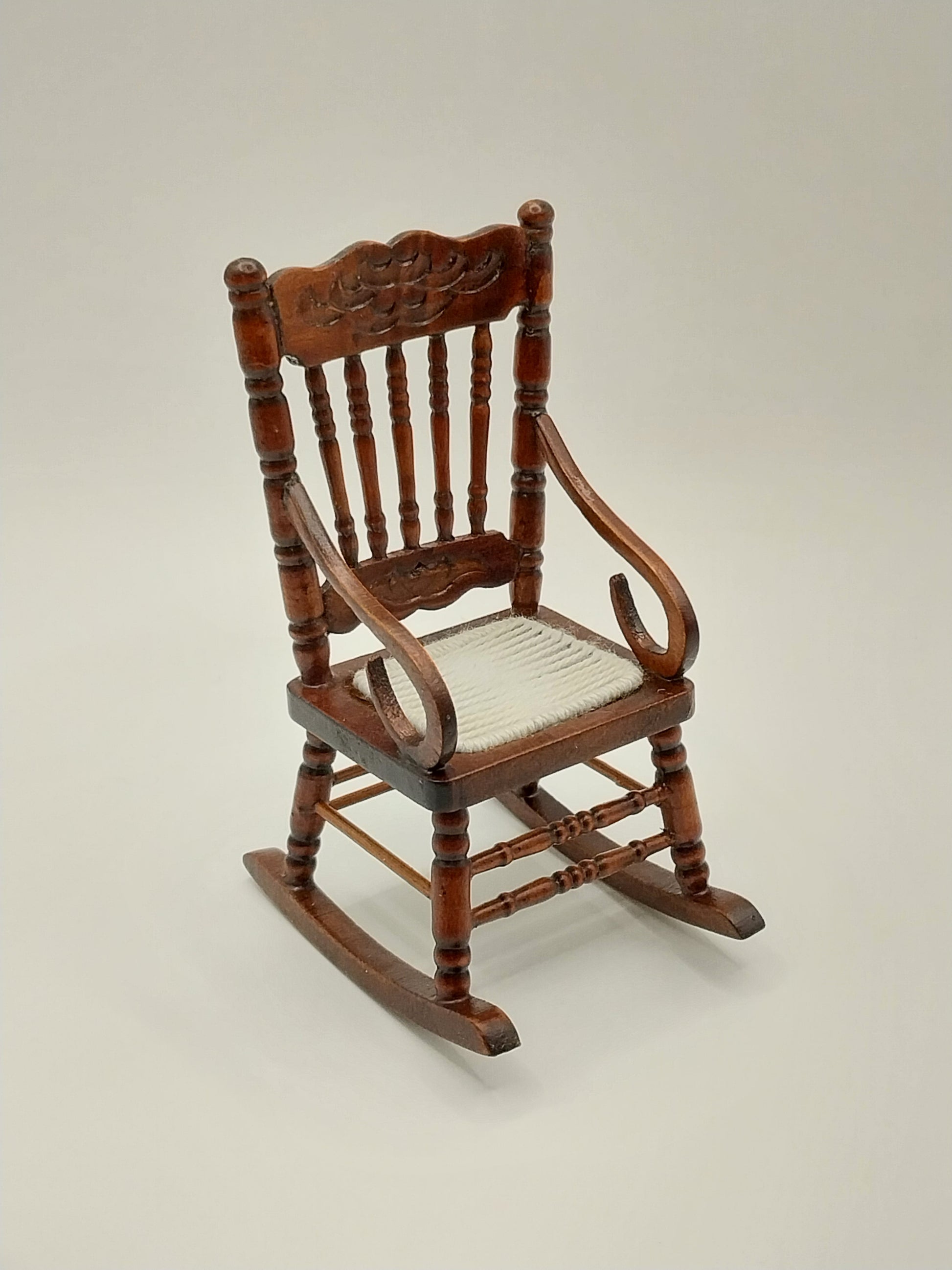 This Gloucester Rocking Chair is done in a Dark Walnut finish with cotton woven rope seat.