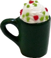 Green Christmas Mug filled to the Brim and topped with Whip Cream and Christmas Sprinkles.