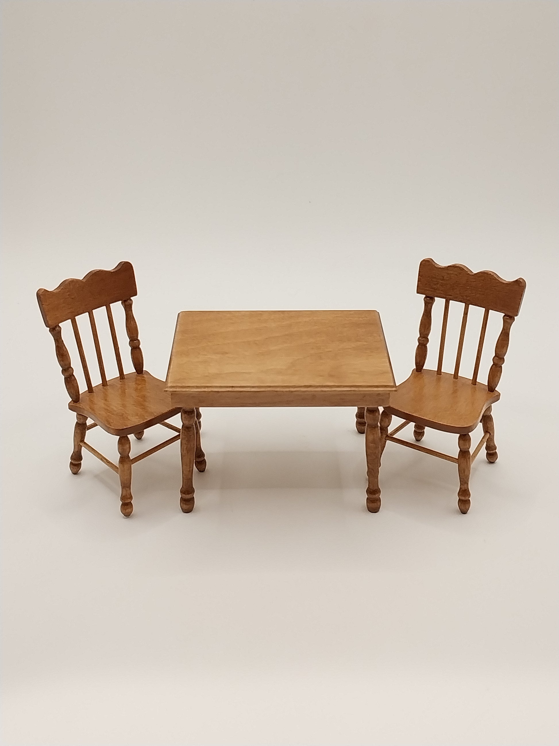 Size: Table: 2 5/8"W x 2"D x 1 3/4"H Chair: 1 3/8"W x 1 3/8"D x 2 1/2"H