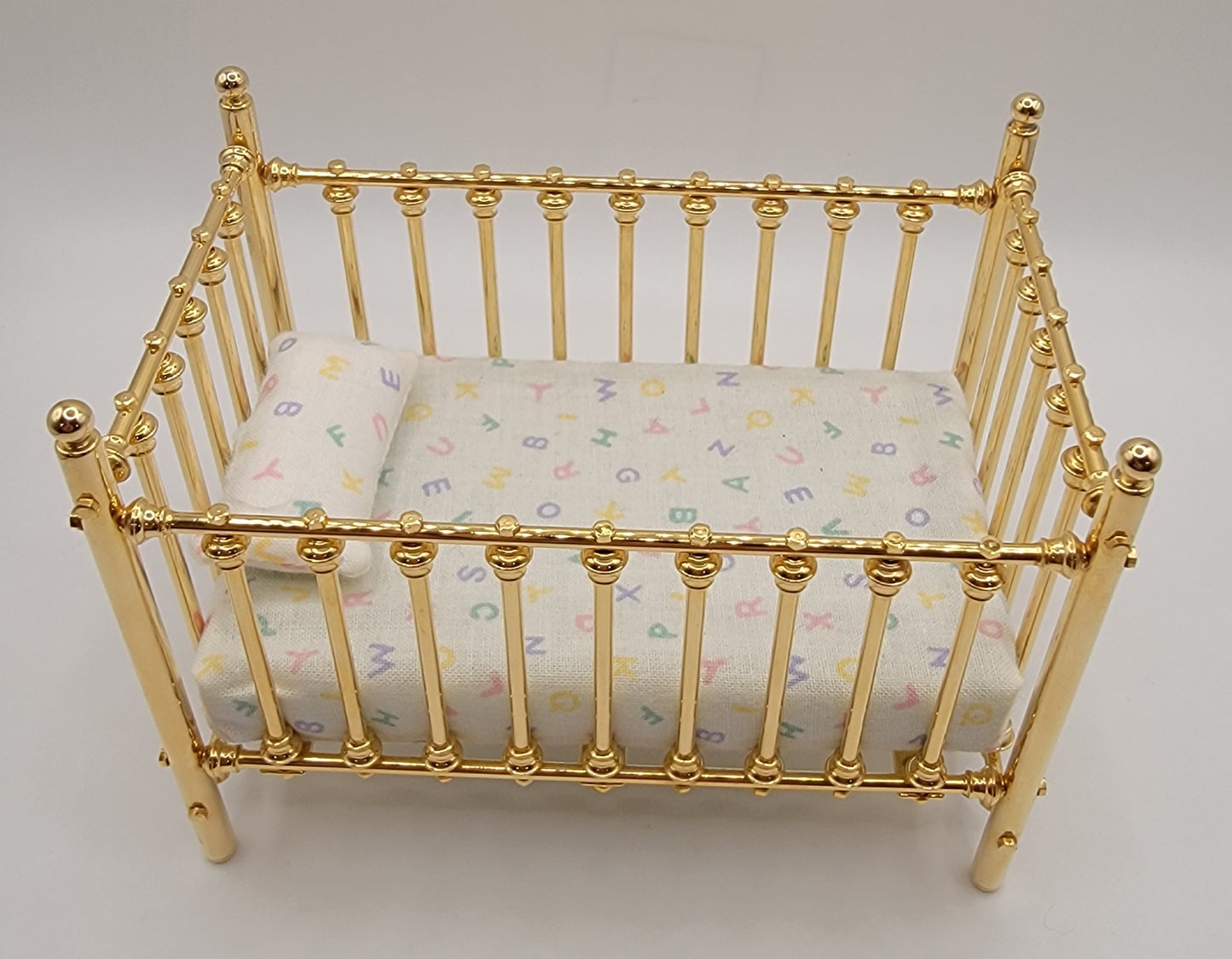 Precision machined from solid brass. Each of the many pieces (115 to be pieces) that make up each bed are polished, assembled by hand, and then gold plated for lasting beauty. This one inch scale bed is truly heirloom quality miniatures. Beds are supplied undressed, with a mattress and pillow.