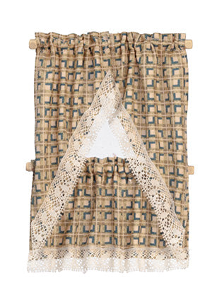 Country Green Kitchen Curtain. Fits a Standard Window in 1" Scale (2 9/16"W x 5 1/16"H).. Wooden Rod included 1" Scale