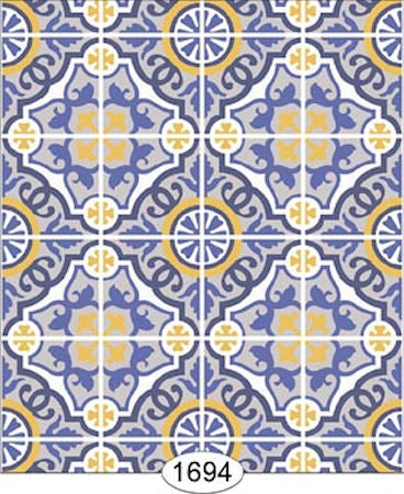 Decorative Tile in Blues and Gold Colors Wallpaper