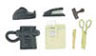 Painted Metal Desk Set, includes stamp, tape dispenser, scissors, pen, stapler, phone, and calculator.