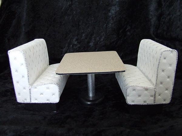 1950s style diner booth! Just bring on the food. Table and 2 benches. Booth is done in White with Silver accents.