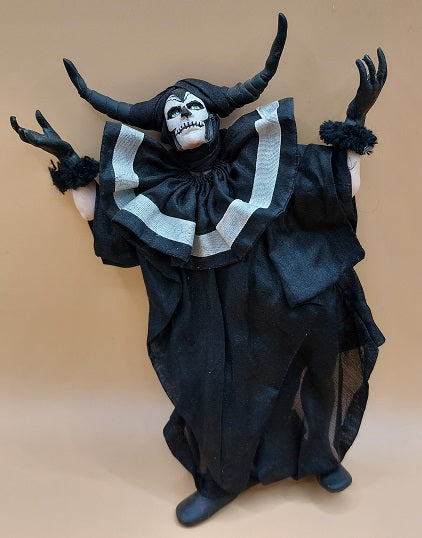 This Day Of The Dead Doll is hand sculpted and jointed wire armitures. His face is hand painted. Made by Artisan James Carrington.