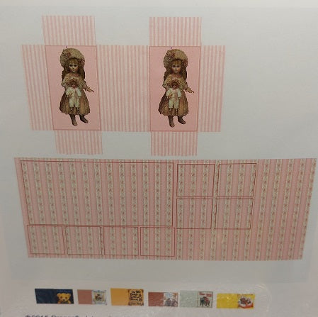 Pink Antique Doll Trunk Kit, comes with Trunk kit and sheet of Antique Doll in pink decor sheet. You also get bonus book covers to make your own books.