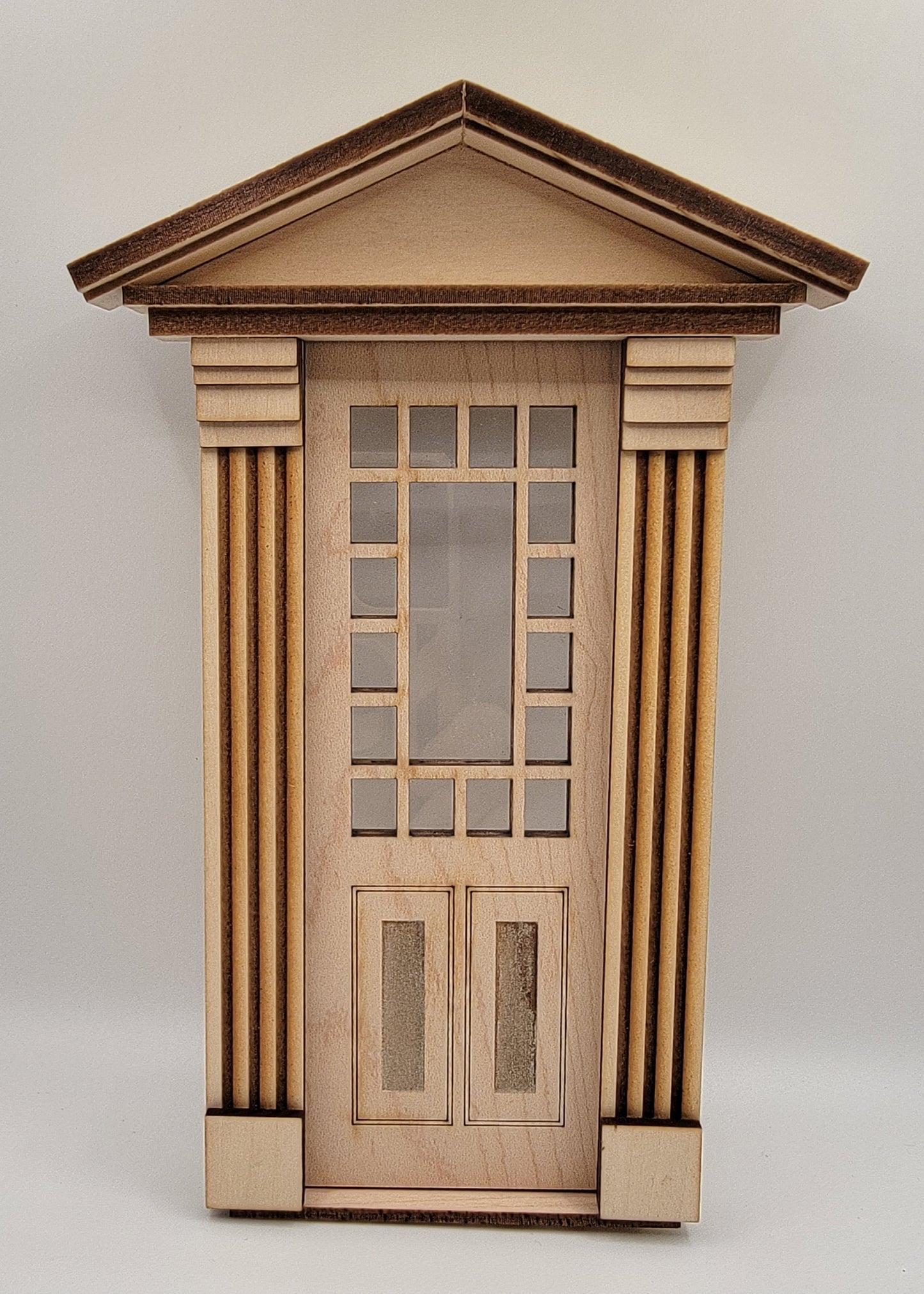 Federal door with a 17 light two panel and a federal top. This wood working door has removable pins for painting.