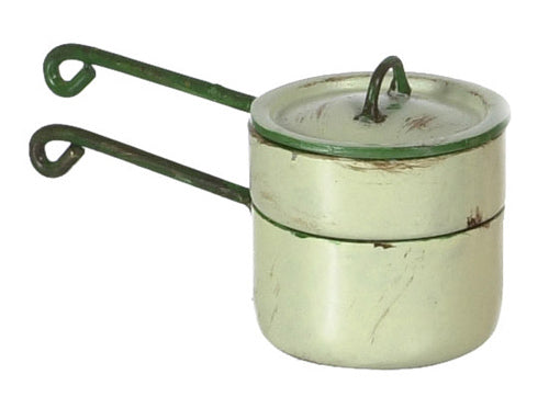 Beige with Green Trim Medium Double Boiler Pot