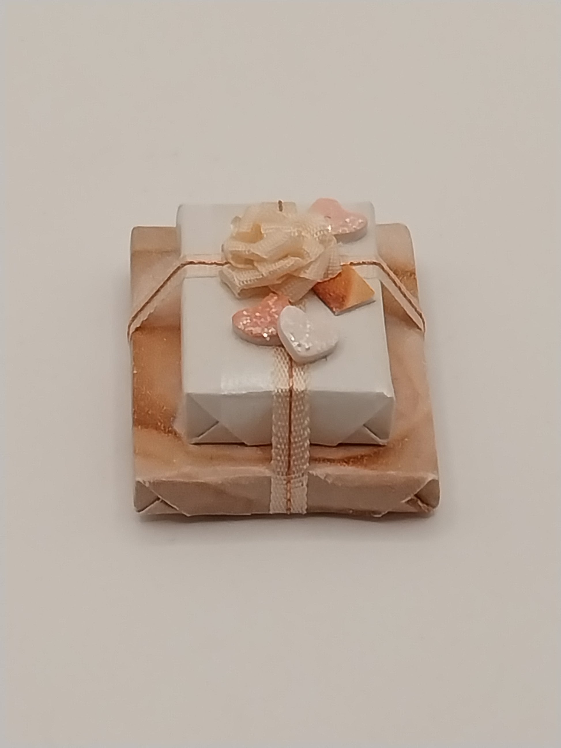 Handmade Double Present with Silk Pink Bow and ribbon and heart accents. Presents are wrapped in a Pink Rose and Cream paper.