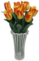 Dozen Yellow/ Orange Tulips in Glass Vase.